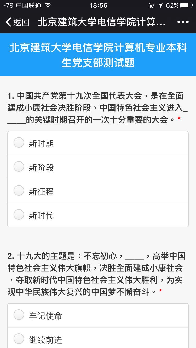 本次活动首先温习了十九大报告以及习近平总书记重要讲话的系列文件,之后则在支部内开展了十九大精神的网络答题活动,问答内容包括十九大精神、新修订党章等方面。