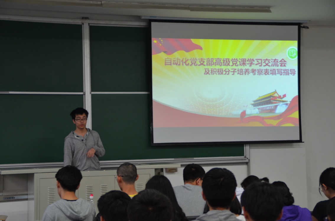 4月27日晚上18:30,电信扑克王下载 自动化专业本科生党支部在基础楼A座115教室召开高级党课学习交流会,支部党员及本专业参加第61期高级党课培训班学员参会,会议由支部党员王陆天主持。