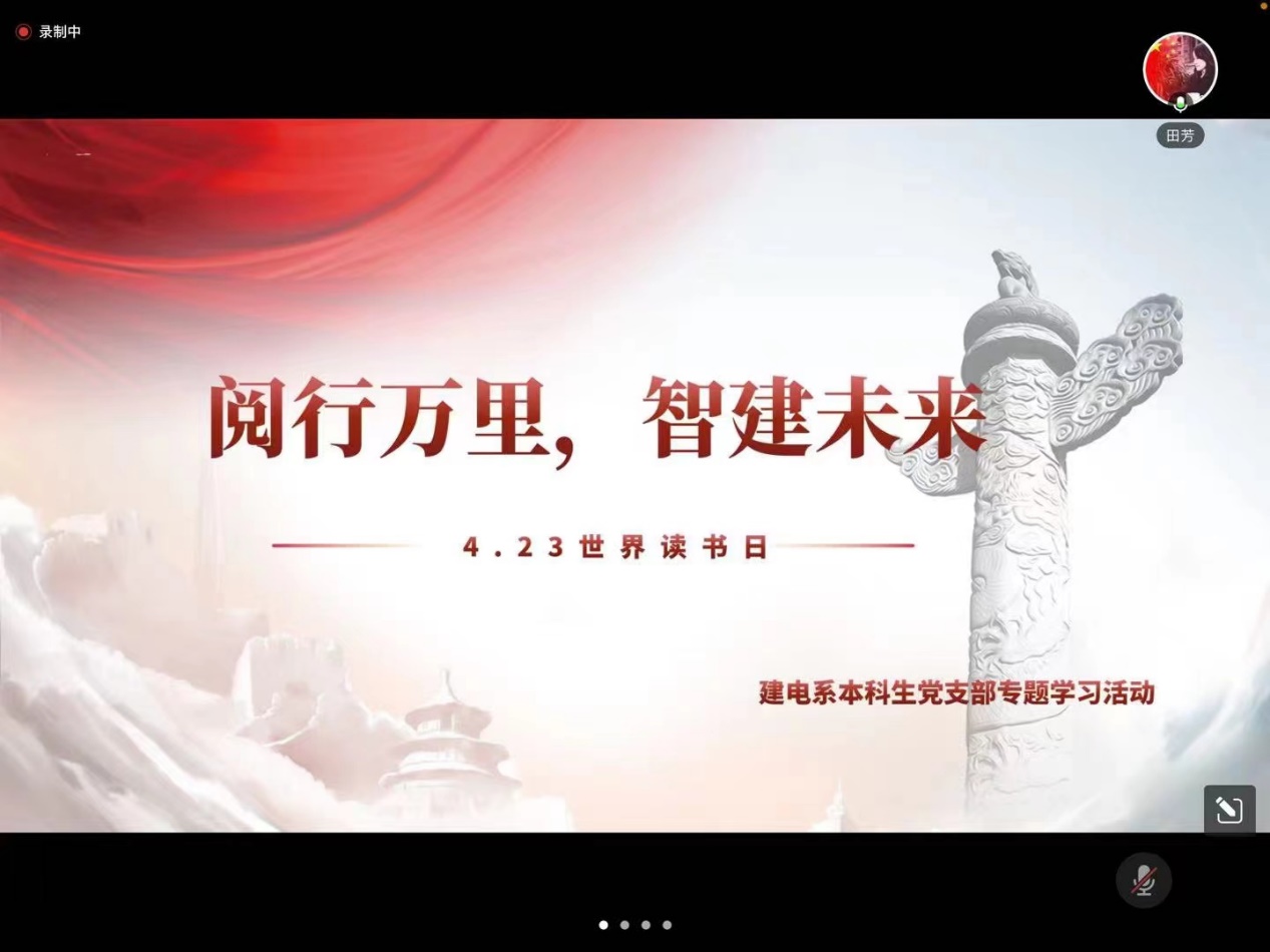 4月23日,电信扑克王下载 党委以“世界读书日”为契机,推进“学习型”党支部建设,作为全国样板支部培育创建单位——建电系本科生党支部举办了“阅行万里,智见未来”世界读书日专题学习活动。师生党员、积极分子和低年级入党申请人共同学习习近平总书记的读书心得,并交流读书心得感悟,继承和弘扬共产党人“重视学习”的优秀品质。学习会由党支部书记阚帅主持。