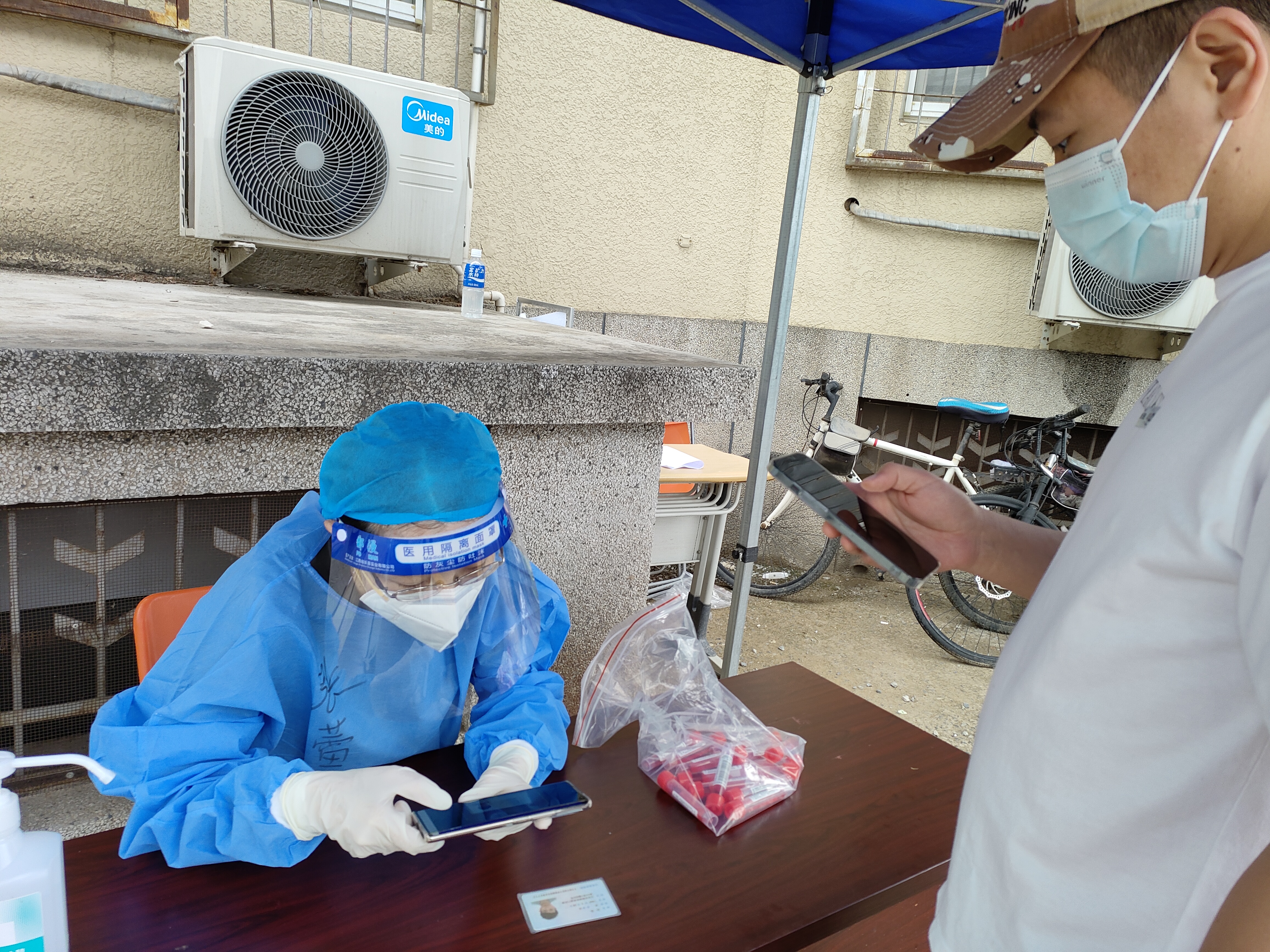 在学校出入口值守,协助执勤保安为出入人员扫码测温,把好门、守好岗,共同营造平安家园。化身小蓝,下沉一线,促进检测效率,守护群众生命安全和身体健康。