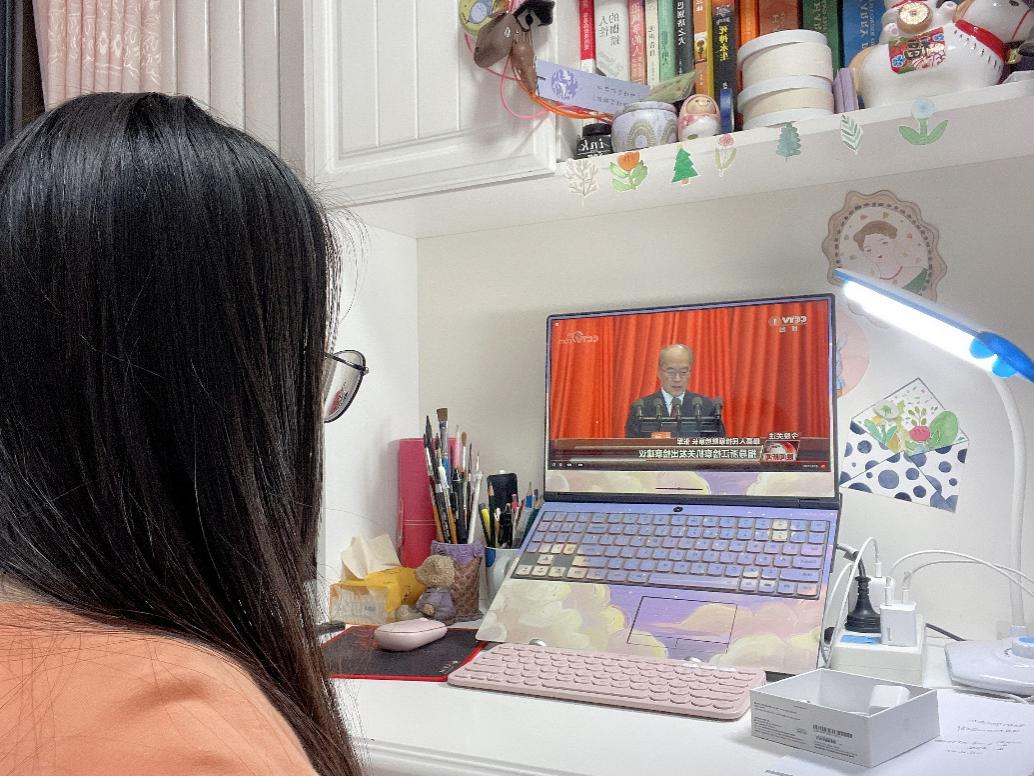 师生热切关注全国“两会”,通过电视、校园网、手机客户端等各种渠道实时追踪、密切关注“两会”动态,及时了解“两会”精神,结合自身实际展开热议。