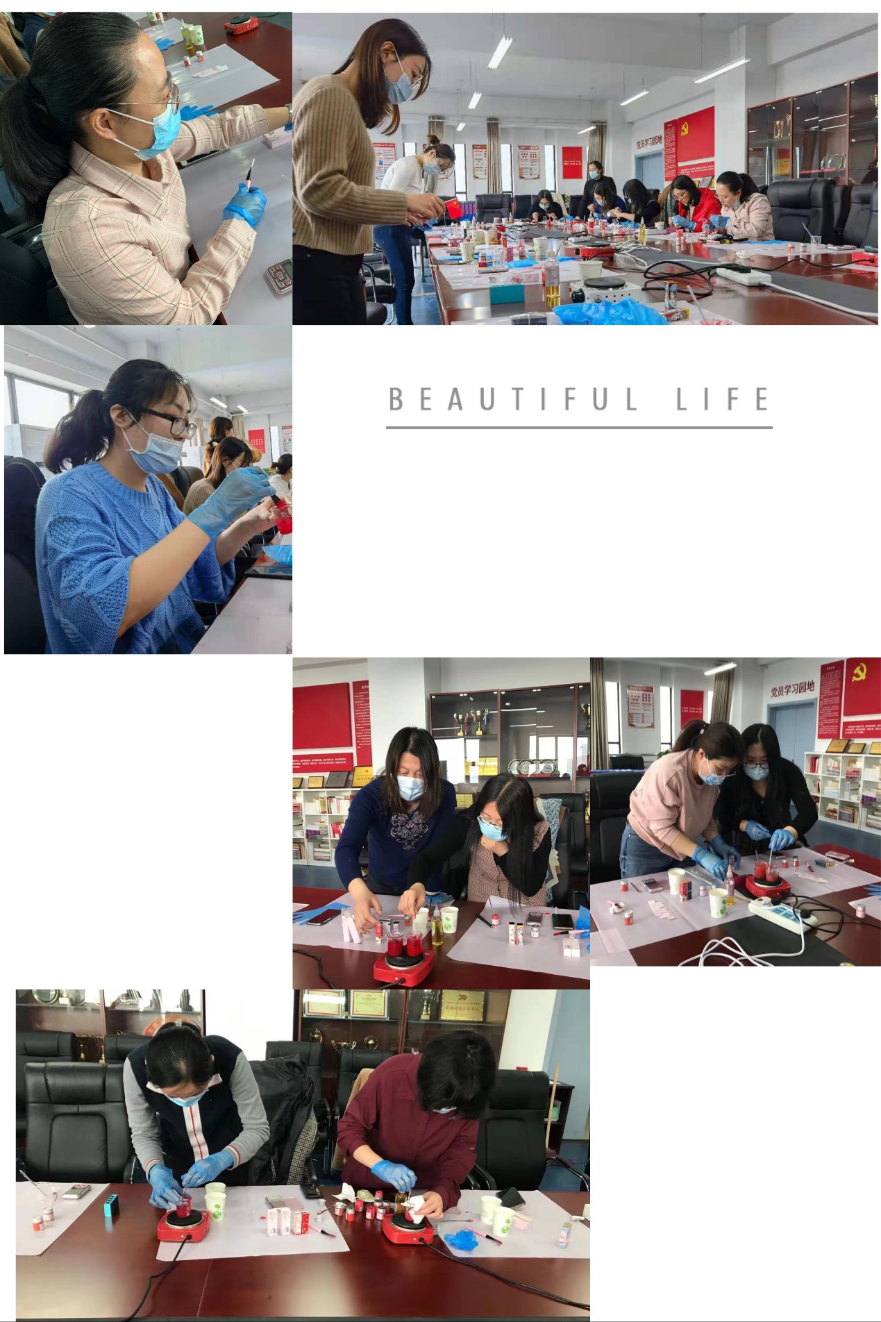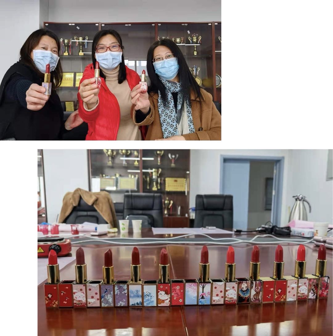 在这次主题活动上,女教职工们听取了一堂轻松愉快、严肃活泼的实验形式的口红制作讲座。讲座上,大家边和老师交流口红的制作要点,口红的色彩搭配,并与同事们合作完成口红的制作。