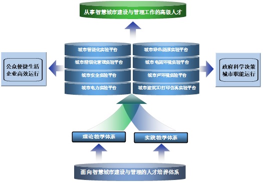 智慧城市是工业文明向知识文明进化的产物,是依托互联网、物联网、传感网、大数据、云计算等在经济、社会、文化、生态和城市管理服务的各个领域构建智慧发展环境。目前,我国的城镇化正处于由快速规模发展,向绿色、智慧可持续发展转变的关键时期,因此需要培养大批适应现代城市建设和管理的高级人才。智慧城市建设与管理涉及学科多、覆盖范围广,其中智能化、绿色能源、精细化管理等实验综合性强,系统结构复杂,无法利用传统方法再现复杂的现场实验环境和工况,采用真实设备难以实现教学功能;城市安全、城市电力和城市环境监测等系统涉及到不可及或不可逆的操作、高危、成本高,消耗大等问题。为此,学校结合北京市这类特大城市智能运行、城市安全智能保障、信息基础设施提升方面的人才培养要求,注重推动信息技术与实验教学深度融合,建设了智慧城市虚拟仿真实验教学中心,2014年获评国家级虚拟仿真实验教学中心。