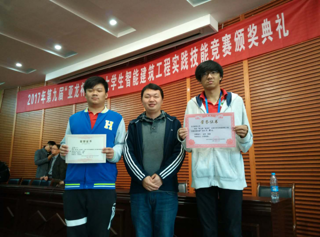 我校代表队由电信扑克王下载 建筑电气与智能化系副主任谢雨飞老师担任指导教师,参赛选手为建电141班孟晋、陈诚两名同学。我校代表队获得了团体三等奖、孟晋同学获得了“建筑电气设计”单项三等奖的好成绩。