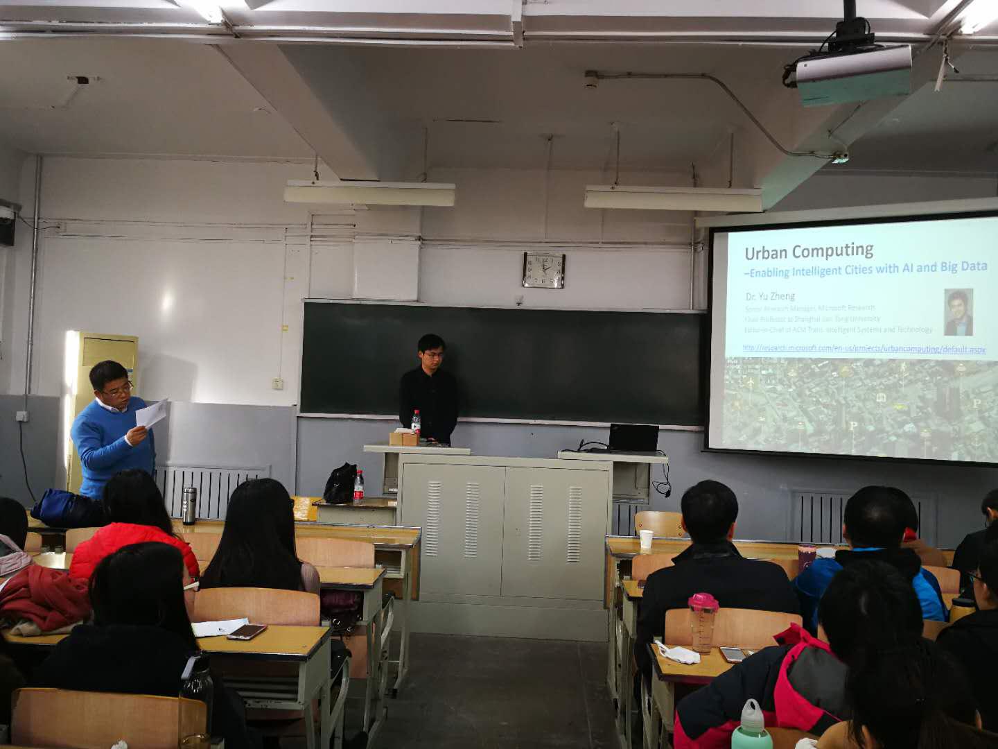 2017年11月29日下午,应电气与信息工程扑克王下载 院长郭茂祖教授邀请,在学校科技处支持下,城市计算领域的知名专家——微软亚洲研究院主管研究员、IEEE和ACM资深会员、中国计算机学会高级会员和杰出讲者郑宇博士就大数据和人工智能(AI)等热点研究问题,在扑克王下载-扑克王app 西城校区面向全校师生举办了一场生动精彩的题为“城市计算——用大数据和AI驱动城市智能”的前沿学术讲座。