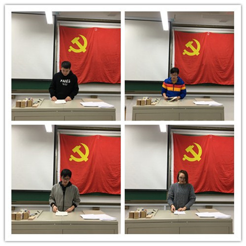 经过长期的考察与培养,刘晓蕾、陈逸群、田斌、张福凯四名同志基本符合预备党员的要求,他们在党旗下庄严的宣读了自己的入党志愿。在这个过程中,每个人都亲历了自己的成长,明确了自己的入党动机,明白了自己的肩上担负了更多的责任。