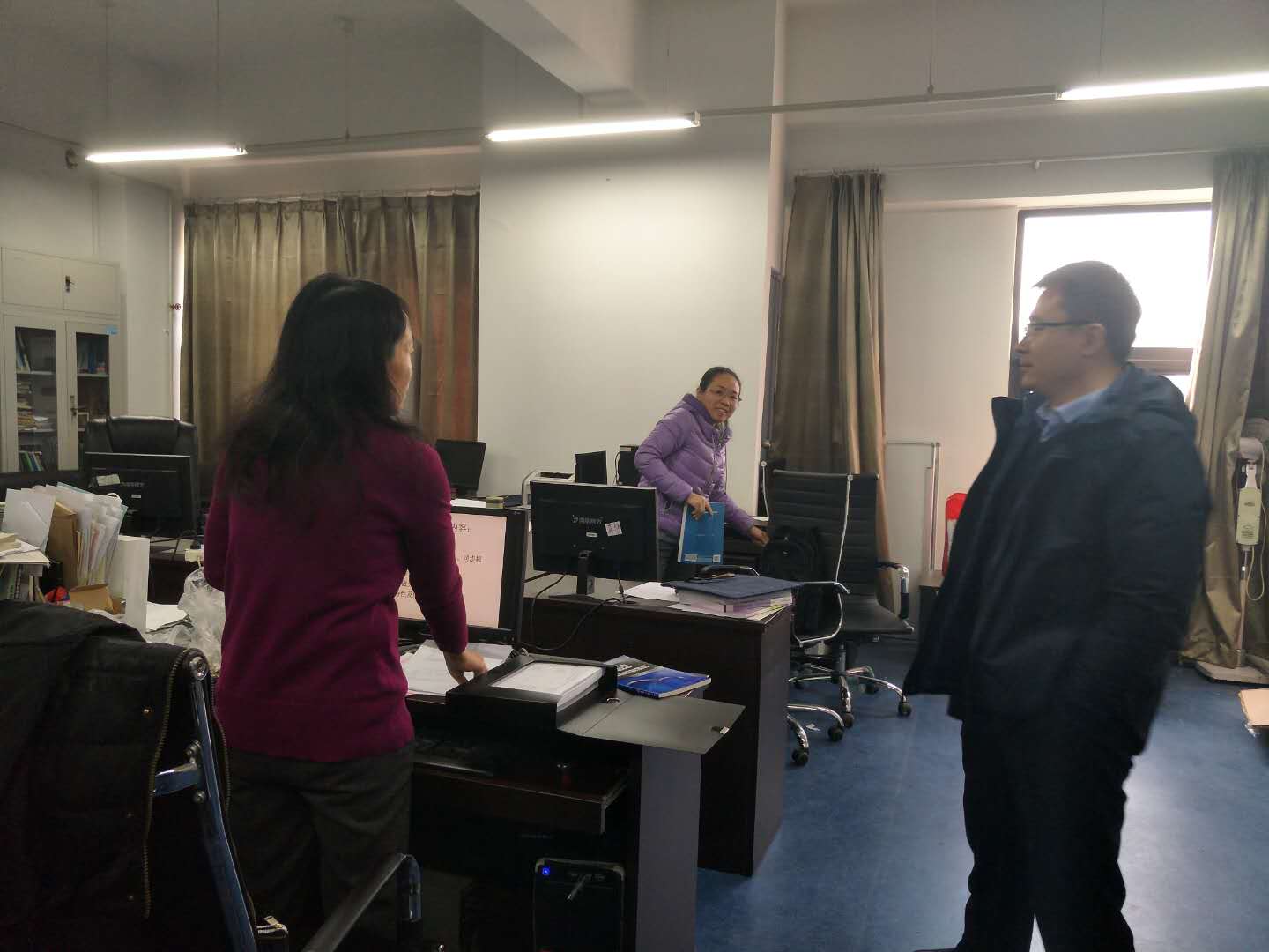 为落实学校2018年春季开学校园安全稳定工作专项部署会的精神要求,3月5日上午,电信扑克王下载 开展新学期安全检查工作。电信扑克王下载 党委书记张雷、办公室主任师洪洪、实验中心主任赵保军参加,对扑克王下载 楼D座实验室、办公室等区域进行了全面检查。检查中排查了安全隐患。针对消防栓、门牌更换等重点问题制定了解决方案,对师生进行了安全教育。另,电信扑克王下载 制定了近期安全稳定工作计划,并制定了近期值班计划。