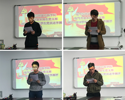 为进一步加强对大学生党员的教育管理,增强大学生党员的党性党风党纪教育,保持党员队伍先进性和纯洁性,更好地发挥大学生党员的先锋模范作用,新学期伊始,根据学校统一部署和安排,电信扑克王下载 电气专业本科生党支部于2018年3月14日在学D542会议室召开学生党员述学测评会。本次测评会特邀电气专业教工党支部书记马鸿雁、支部党员所在班级的学生代表参加并给予评议。会议由电气专业本科生党支部书记高静主持。