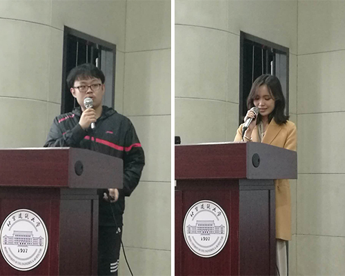 在分享环节,计141班陈连兴同学和电气141班邹颖同学从不同角度对考研进行了解读。陈连兴就个人体会分析了考研的总体趋势,学硕专硕的区分以及院校选择等方面的内容,告诫同学们首先要明白自己考研的目的,只有知道自己是为什么而学的时候,才会真正专心致志地去学习。邹颖同学则带来了自己在备战考研过程中总结的宝贵经验,从初试到复试,从参考教材到复习方法,从重要信息的搜集到复习时间的分配,满满的干货使到场学生受益匪浅,也对她在过去一年中的坚持与努力留下了深刻印象。同学们在交流环节中就复试面试、考研调剂以及复习安排进行了提问,对于考研进一步加深了认识。