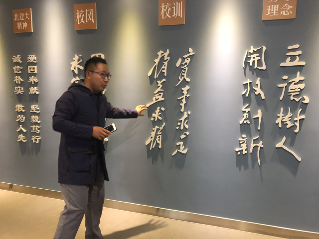 在学生负责人的带领下,活动下午一点半准时开始。校史馆以图文并茂的信息和实物,展示了学校各个方面建设的精神风貌和杰出成就,对学校人文、地理、教学、科研及对外交流等方面都有详细的介绍,展现了建大各个时期的办学成果,以及各种名人事迹。