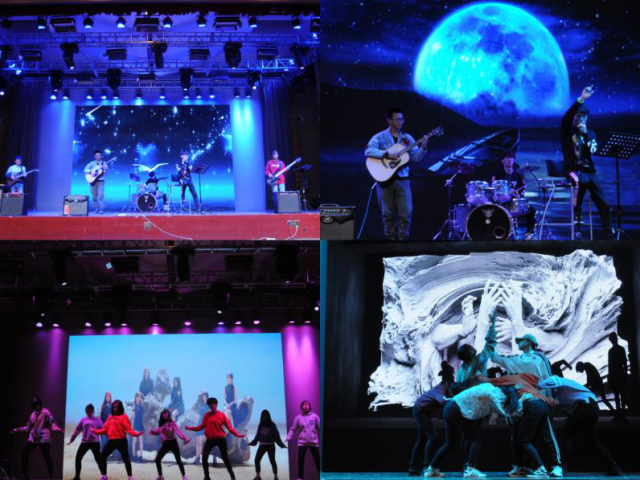 随后进入表演环节,开场是由李子豪同学表演的单人小品《2018这一年》,他幽默的语言和夸张的的肢体动作成功点燃了现场的气氛。任美伦和高蓝天同学表演的魔术《法式热吻》,让大家在未知的感觉中探索下一步,环环相扣,引人入胜。由七位可爱女生编排的宅舞《神的随波逐流》、幻萌acg动漫社的《将进酒》、韩舞社的《hann+fake love》、街舞社带来的街舞表演《bannd new all school》将动感与时尚结合,用跳跃的音符和动人的脚步体现了自由与激情,处处展示着青春的风影。来自魏兰同学演唱的《光年之外》、潘力炜自弹自唱的《可乐》、horizon 乐队演唱的《晴天》、《平凡之路》诠释了她们开朗热情的性格与吸引人的个性。说唱组合yung ssaw/mok的歌曲《玩水》更是将晚会的气氛推到了高潮,使大家按耐不住自己的激动纷纷走到台前一起欢呼呐喊。