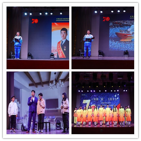 晚会伊始,由参加国庆典礼的校合唱团同学带来精彩节目《我爱你中国》和《红旗飘飘》,歌声深深表达着当代大学生对祖国的热爱。紧接着是王荣林和胡肖飞两位同学分享国庆游行感言,向同学们讲述国庆大典的盛况和训练背后辛苦的付出,深深触动着观众的内心。