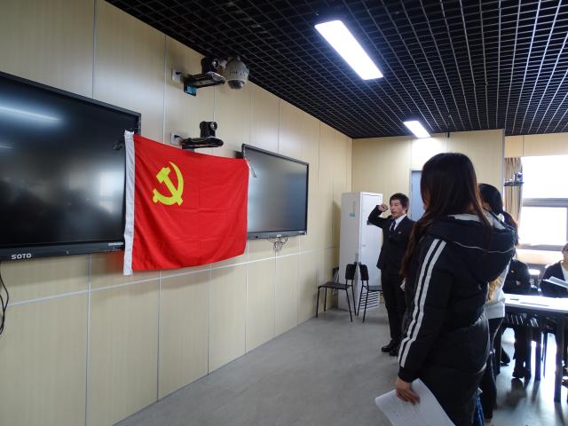 最后,七位同志由杜彬带领,在党旗下庄严宣誓。也向大会表达了自身的想法与决心,不忘初心跟党走,在今后的学习工作中,坚定目标、严格要求自身,努力改正现有不足,积极向优秀共产党员学习,在班级中起到先锋模范作用。