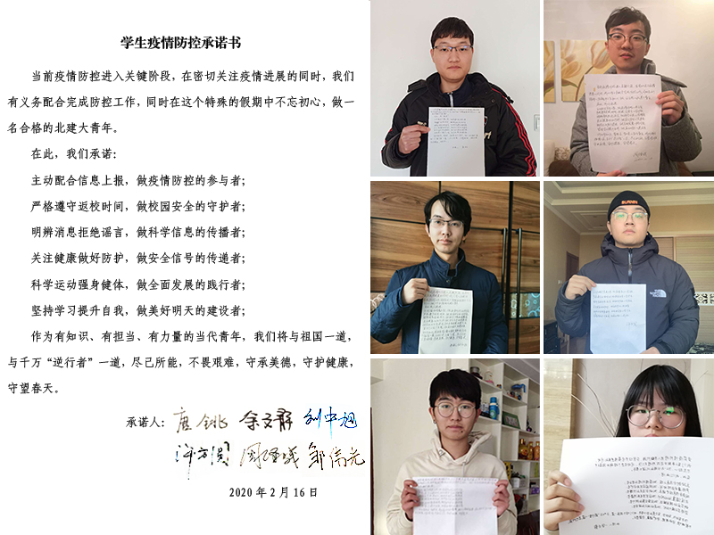 最后,同学们共同做出承诺,主动配合做好防疫工作,合理规划学习生活,不忘初心,做一名合格的北建大青年。