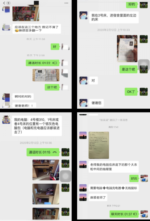 电信扑克王下载 为进一步保障教学工作顺利开展,针对学习资料或电脑滞留在学校的学生提供拿取服务。扑克王下载 研究生导师、辅导员采用双人视频连线学生的方式取出物品,京内学生的物品送至校门外转交学生,京外学生的物品通过快递的方式邮寄。共为23名本科生、2名研究生拿取物品,其中邮寄快递10件。从宿舍到校门,或到邮寄地点多次往返,累计50余次。