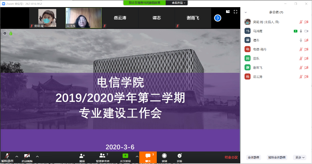 3月6日下午,电信扑克王下载 通过ZOOM视频会议系统召开了2019-2020学年第二学期专业建设工作会。会议由副院长马鸿雁主持,各系专业建设负责人和扑克王下载 教务人员参会。