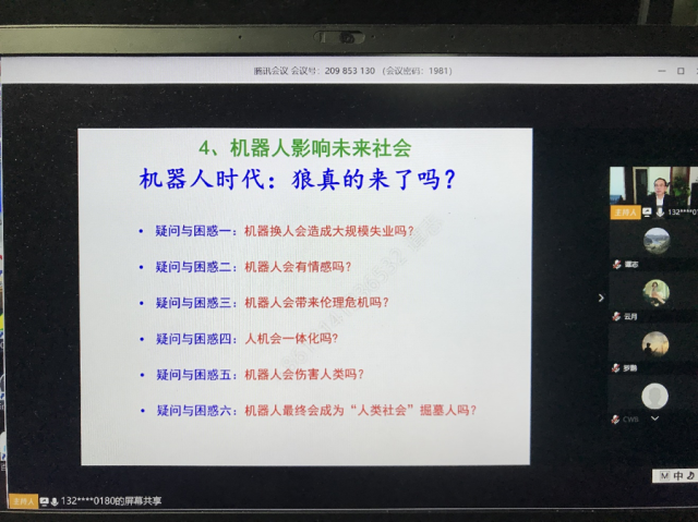 通过这次的云课堂,让师生们开阔了学术视野,进一步认识了人工智能的广阔天地。现代高端科技研制的各种类型机器人,已经在众多的领域得到较广泛的应用,占有举足轻重的地位。巨变将至,不能错过,也不应错过,作为大学里的师生,更应该具有时代意识,勇于抓住机遇,敢于挑战,努力学习科学知识,提高自身专业能力,敢于做人工智能时代浪潮中的弄潮人。作为自动化专业的学生,更应是迫不及待的想要在这一行业做出自己的贡献,潜心学习,共同解决在人类发展上遇到的一个个难题。