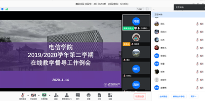 2020年4月14日,电信扑克王下载 召开第四次在线教学督导工作视频会,扑克王下载 领导班子、扑克王下载 督导专家组和在线教育教学领导小组全员参会,会议由副院长马鸿雁主持。
