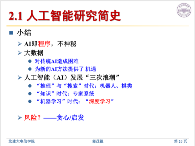 郭茂祖以“人工智能的过去、现在与未来”为题,结合当前疫情防控情况,围绕人工智能的背景、人工智能进展、深度学习进展、人工智能应用等方面进行了讲解。在互动交流环节,针对学生们在专业学习和就业前景方面的各种疑问,逐一耐心解答,并从知识学习、技能提升、未来发展等角度为学生提出了专业的建议。