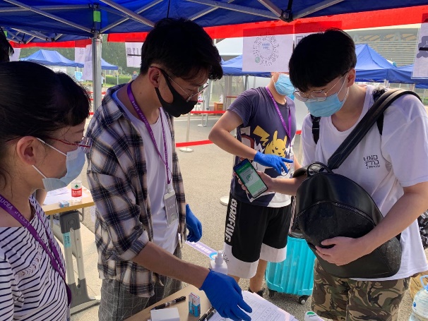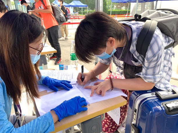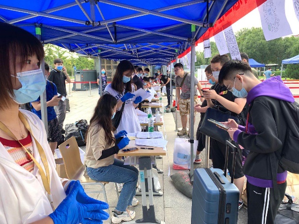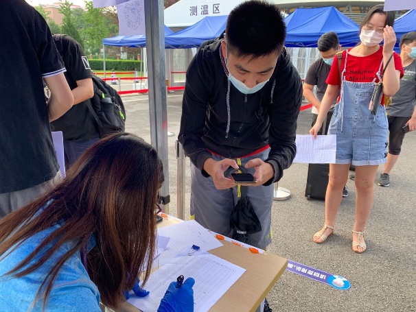 对于近14日内未离京的同学,扫码验证通行大数据,核验通过的同学方可报到入校。本科及研究生报到同步进行,有条不紊。