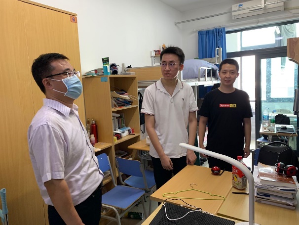 并在走访中提示学生们,返校后注意环境卫生,保持每日三次通风,避免聚集,科学防疫。