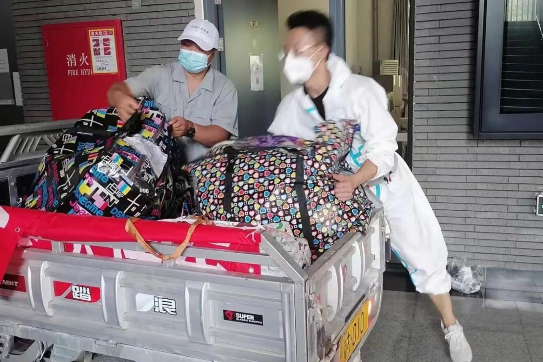 学生党员们不辞辛苦,穿梭在宿舍楼与校园之中,丝毫不在意高悬的烈日,不顾自己已被汗水浸湿的衣裳与满是水汽的口罩,搬运着一箱箱沉甸甸的行李,但是他们没有一人叫苦叫累,全心全意地竭力为毕业生们服务。