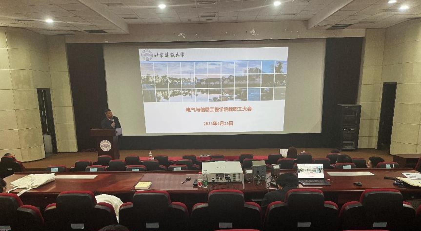 在学D一层报告厅组织召开全院教职工大会,会议由党委书记李云山主持。