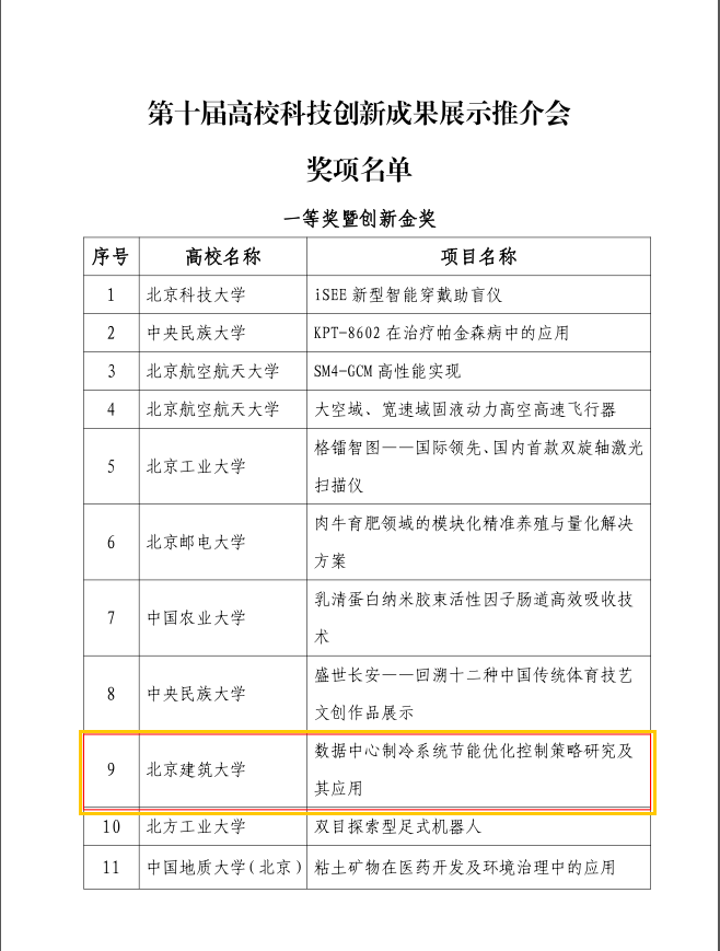“第十届高校科技创新成果展示推介会”一等奖获奖名单