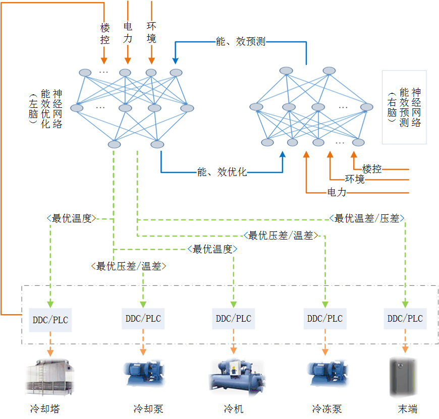 该成果采用多层前馈深度神经网络建立系统模型,以气象参数、设备系统的状态量、控制量、能耗指标等当前和历史状态数据驱动,并实现在线学习;控制器采用多层前馈深度神经网络结构,融入预测控制、最优控制思想,依据误差反向传播机制和梯度下降方法,在低内存、高运算效率下实现非线性多目标性能滚动优化,能够降低开发成本,易于工程实现;采用分层递阶的控制架构设计,可与传统DCS集散控制系统无缝对接,联合运行,成果已取得发明专利。