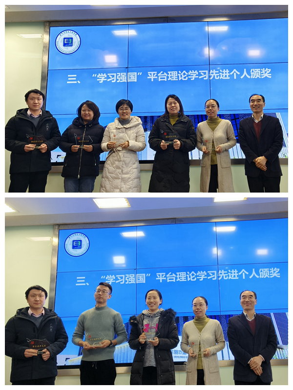 在表彰环节里,田芳宣读了《关于表彰“学习强国”平台理论学习先进个人的通知》,李云山为获得理论学习之星、学习进步之星的10位老师颁奖,鼓励他们持续加强理论学习,发挥榜样作用。