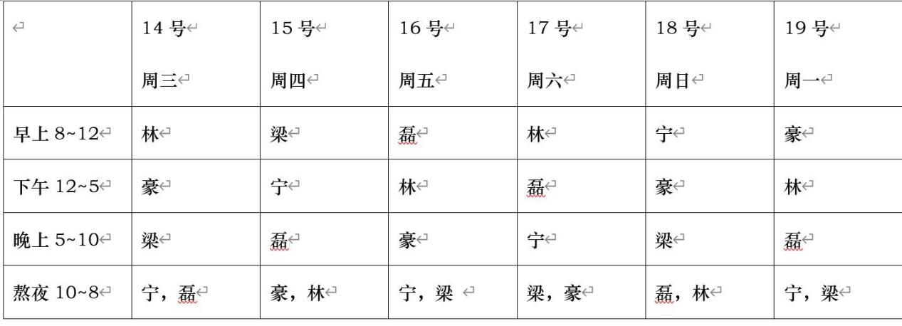 时间安排表