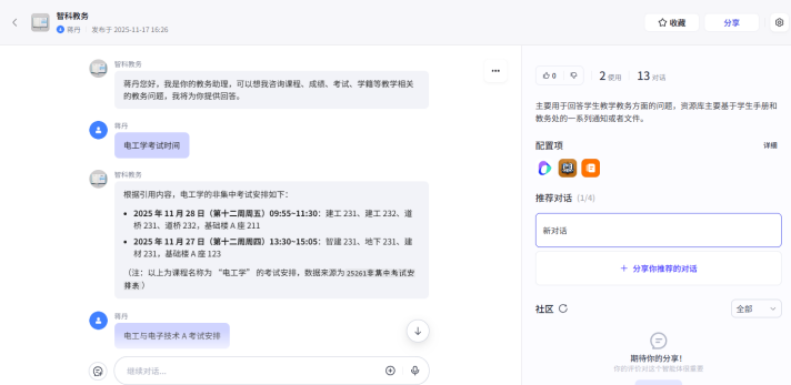 持续推进教务学务管理数字化转型,调试并上线“学业咨询智能应答系统”,为本科学生提供7x24小时政策答疑与办事流程指引,让学业咨询更便捷、更高效。