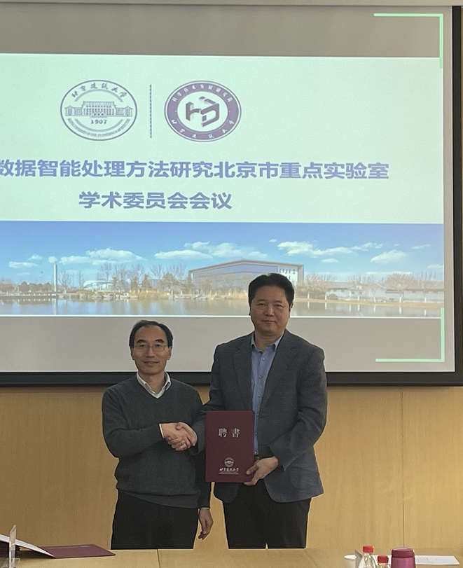 2023年12月18日,“建筑大数据智能处理方法研究”北京市重点实验室2023年度学术委员会会议在扑克王下载-扑克王app 召开,会议以线上线下相结合的方式举行。学术委员会主任王清勤教授级高级工程师,委员曹勇教授级高级工程师、陈恩红教授、戴亚平教授、贾彩燕教授、吕科教授、邱均教授、尹建芹教授、张宝昌教授、赵千川教授出席会议。实验室主任郭茂祖教授、副主任魏东教授,以及科学技术发展研究院副处长王万鹏、电信扑克王下载 党委书记李云山、副院长马鸿雁教授、副院长赵光哲教授及实验室相关师生参加会议。李云山书记为实验室学术委员会委员颁发了聘书。