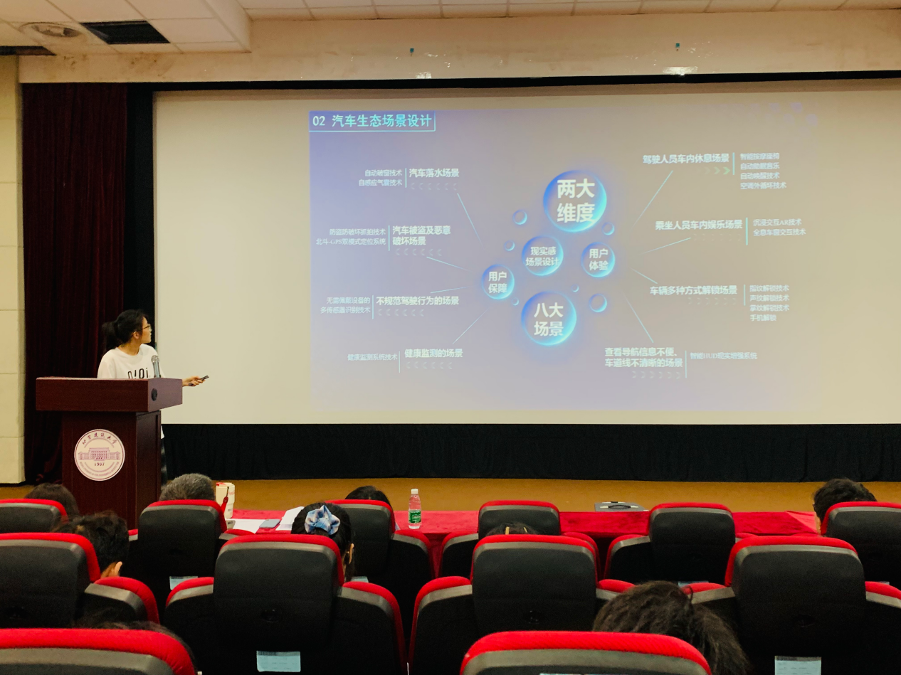在“面向未来”环节,团委书记阚帅老师对扑克王下载 科创工作进行了总结,并对2023年竞赛开展计划、团队招募计划进行了宣传。扑克王下载 致力于面向未来的创新型人才培养,全面完善扑克王下载 双创育人体系,通过“科技文化节”搭平台,引领学生感受科技魅力、迸发创新思维、提升专业本领,激发学生科创兴趣,树立科技报国志向。研究生代表崔珂、廉露带来《未来乘用车人机交互系统设计》科创项目展示,向广大师生展现科技竞赛团队的研究成果。