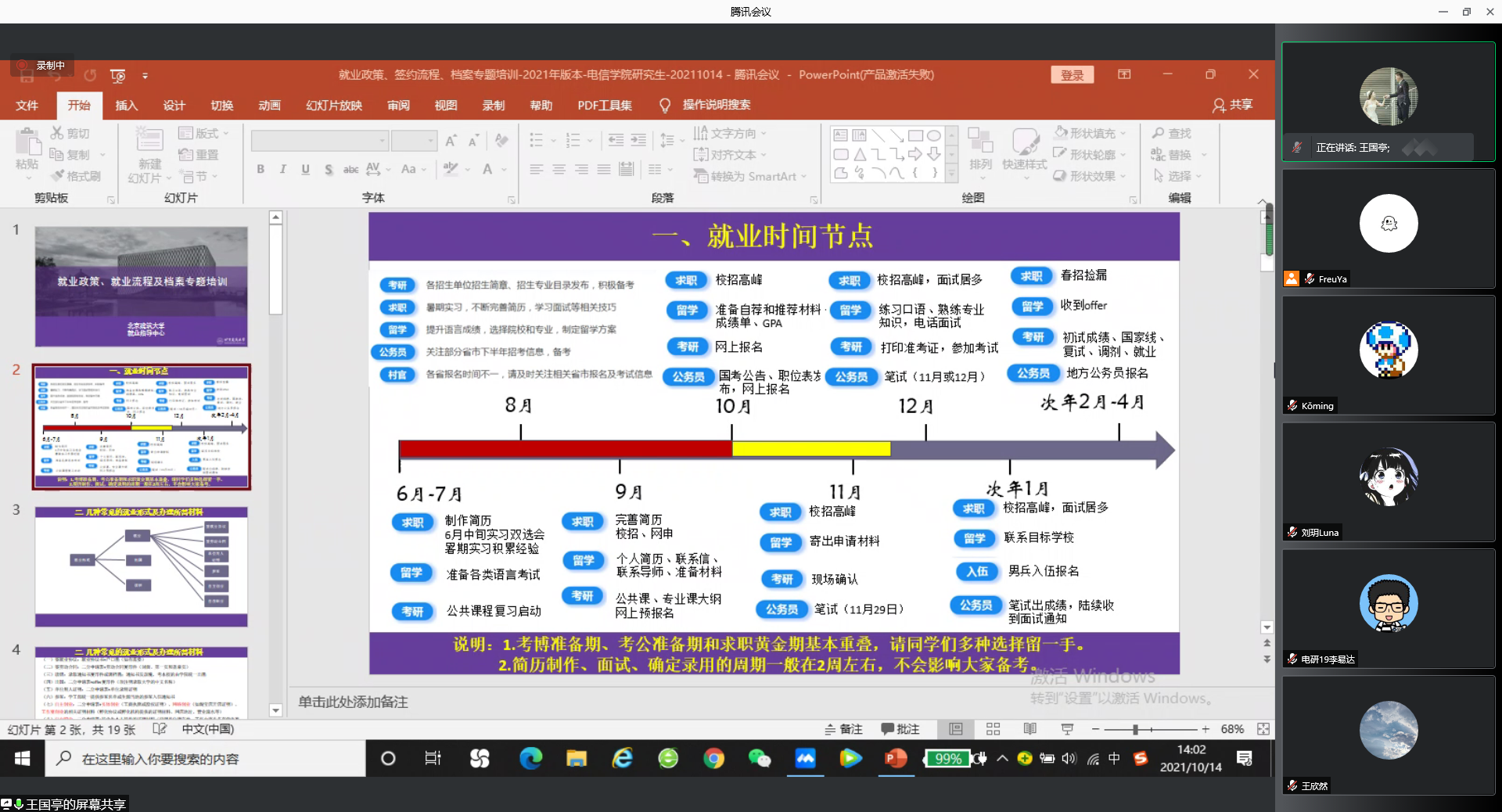 为做好毕业生就业工作,帮助同学们了解就业相关事项,10月4日下午15:00、10月14日下午14:00电信扑克王下载 在线上分别召开2022届本科生、研究生就业政策说明会。会议由就业辅导员韩亚洁老师主持,就业指导中心杨益东、王国亭老师主讲,扑克王下载 全体2022届毕业生参加会议。