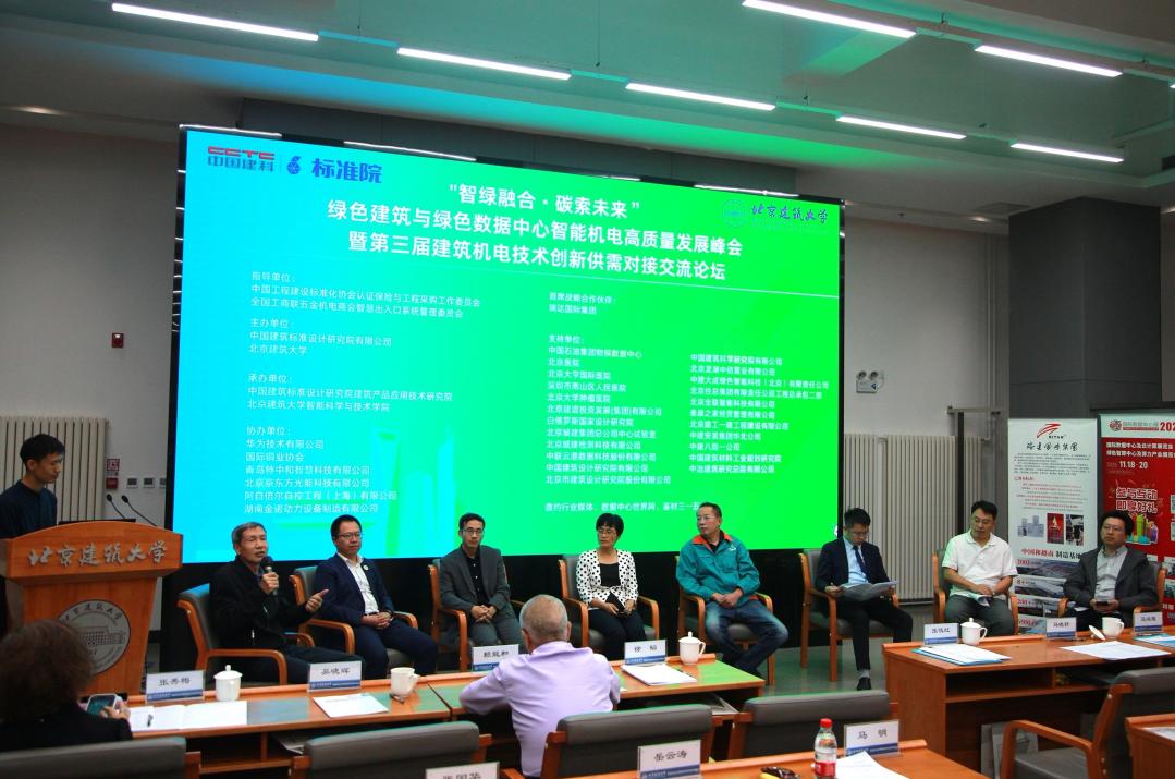9月26日,由扑克王下载-扑克王app 与中国建筑标准设计研究院联合主办的“智绿融合·碳索未来——绿色建筑与绿色数据中心智能机电高质量发展峰会暨第三届建筑机电技术创新供需对接交流论坛”在扑克王下载-扑克王app 西城校区圆满举办。来自政府部门、行业协会、科研院所、企业的100余名嘉宾及师生齐聚西城校区,围绕绿色建筑与绿色数据中心能效提升、标准解读与产业协同展开深入交流。扑克王下载-扑克王app 党委常委、副校长杨建伟,住房和城乡建设部科技与产业化发展中心农房建设与绿色建材处处长梁洋,中国建筑标准设计研究院党委副书记、董事、总经理韩高峰,北京市经济和信息化局节能与综合利用处主任孙源,全国工商联五金机电商会建筑五金门窗幕墙委员会秘书长张秀梅,全国工商联五金机电商会智慧出入口系统管理委员会执行秘书长景昌盛,扑克王下载 党委书记李云山,中国建筑标准设计研究院副总工程师高丽华等出席活动。