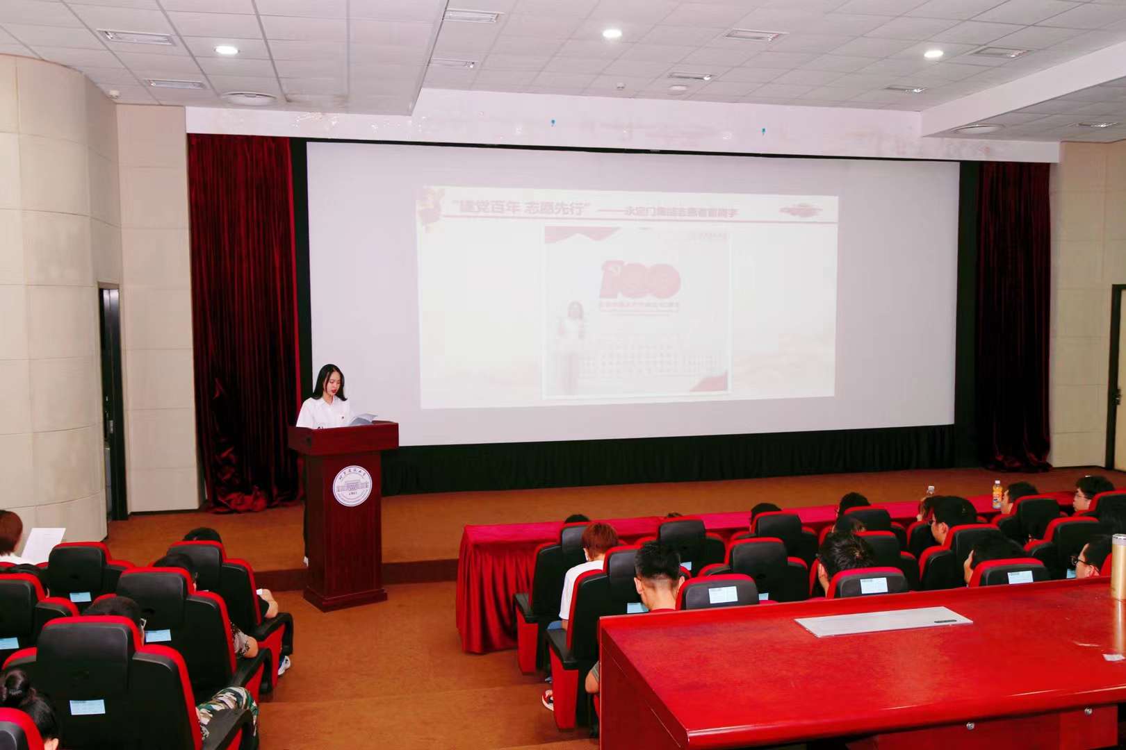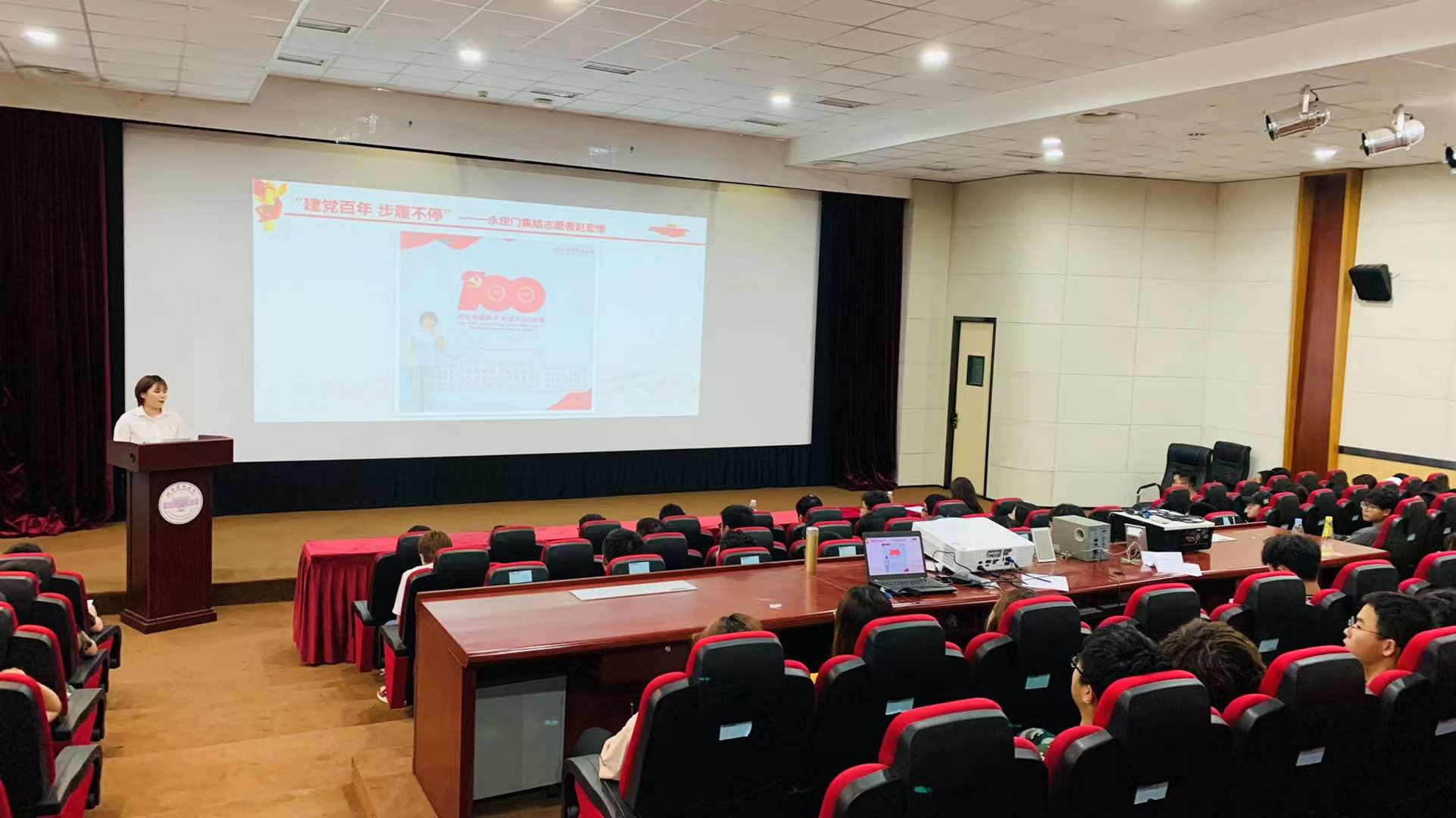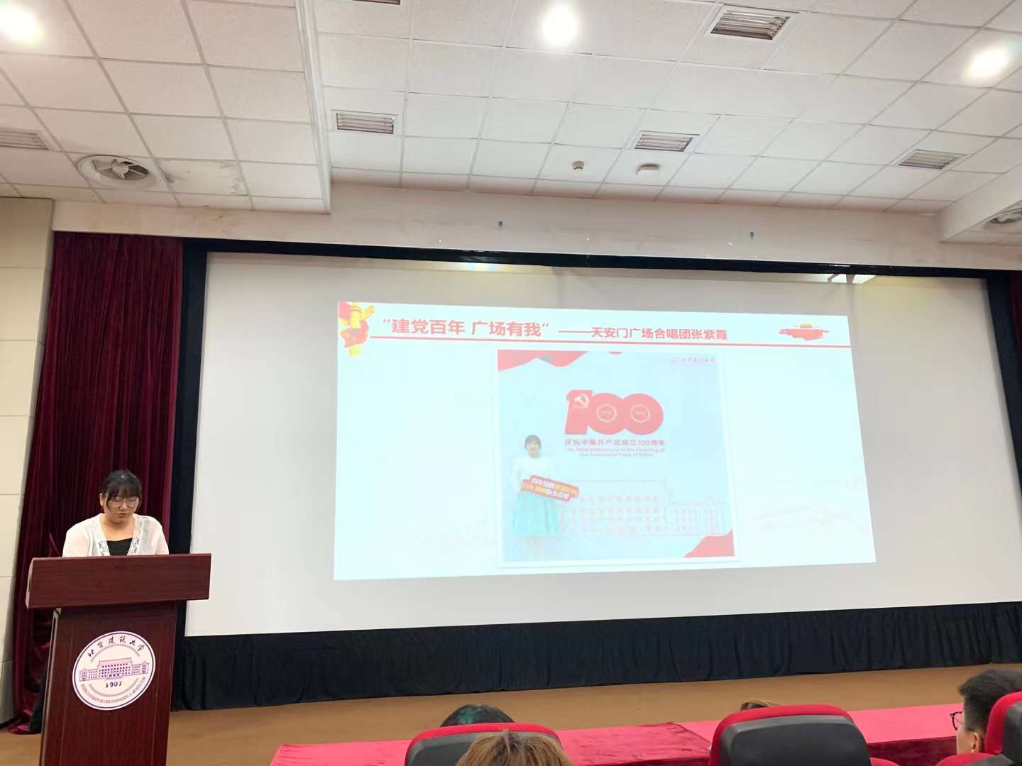 活动第一项,全体师生共同回顾庆祝中国共产党成立100周年大会的盛况视频。