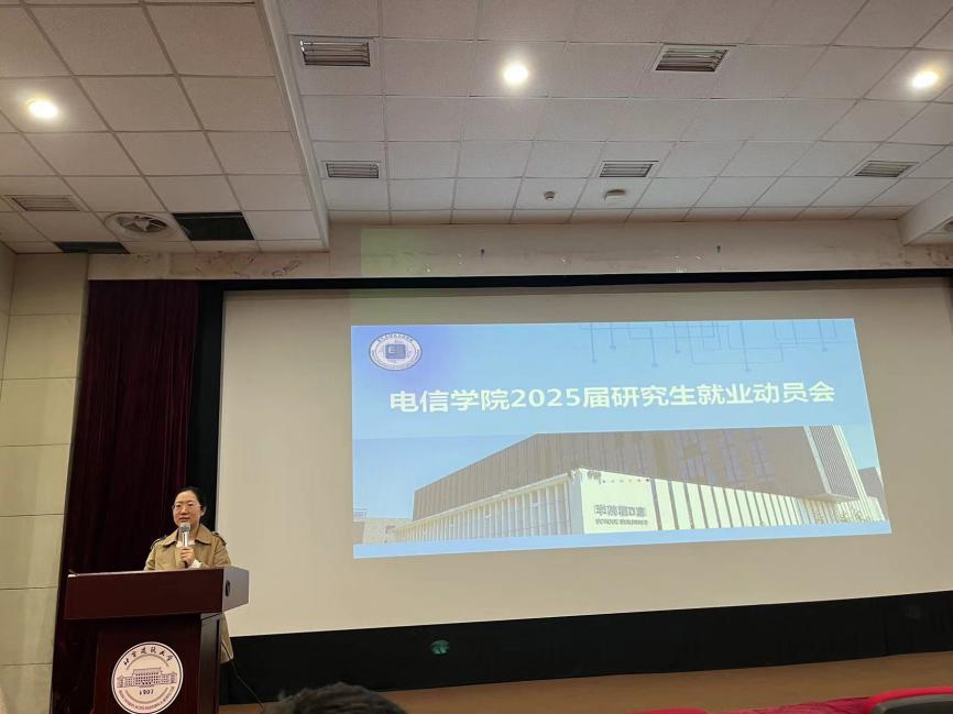 2024年4月11日,扑克王下载-扑克王app 电信扑克王下载 2025届毕业研究生就业动员会在扑克王下载 楼D座报告厅成功举办。电信扑克王下载 党委副书记田芳,就业指导中心就业管理科科长王国亭、研究生辅导员王景民、校友代表以及2025届毕业研究生参加了此次动员会。