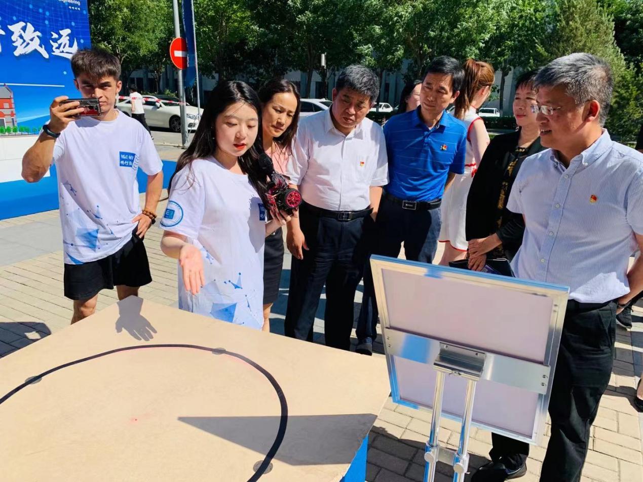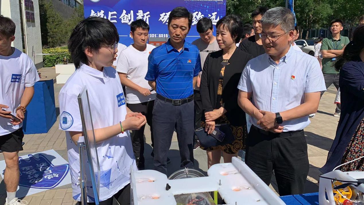 随后,师生们一同参观了现场的学生科创作品展:足球机器人、助老机器人、循迹小车、舞蹈机器人、仿人散打机器人、格斗机器人、智能车—越野、智能车—基础四轮、百度人工智能车—封狼居胥、水下管道智能巡检机器人、智能物流搬运、智能无人机、仿人机器人等一系列学生个人或团队的科创成果,并与负责人讨论交流作品的功能及创作想法。与会嘉宾对学生自主创新的各类作品给予了很高的评价,同时也提出了更高的期望。