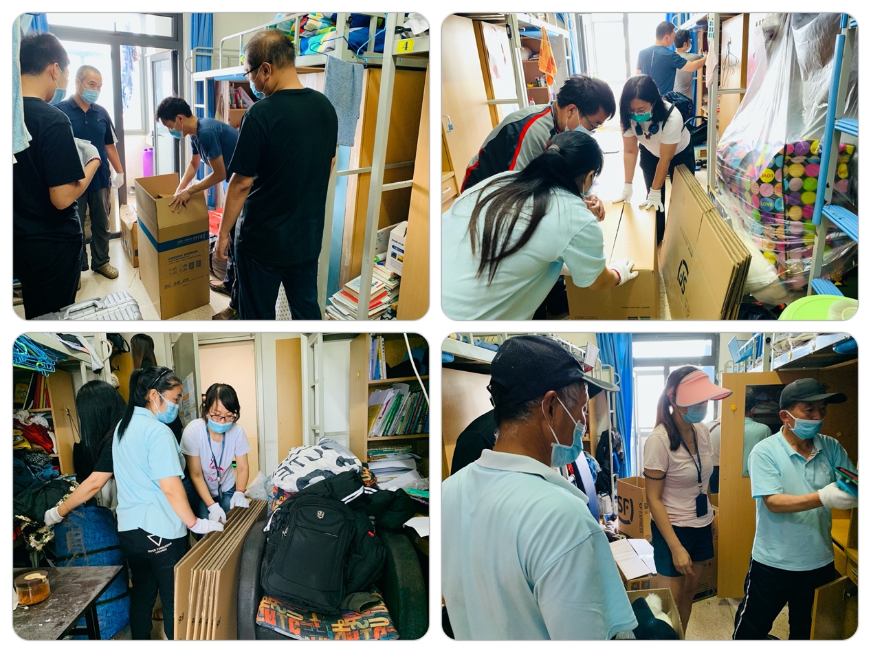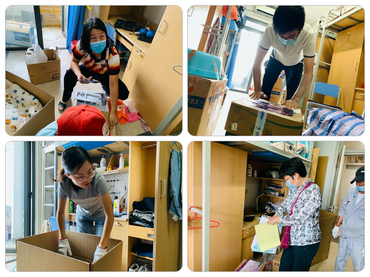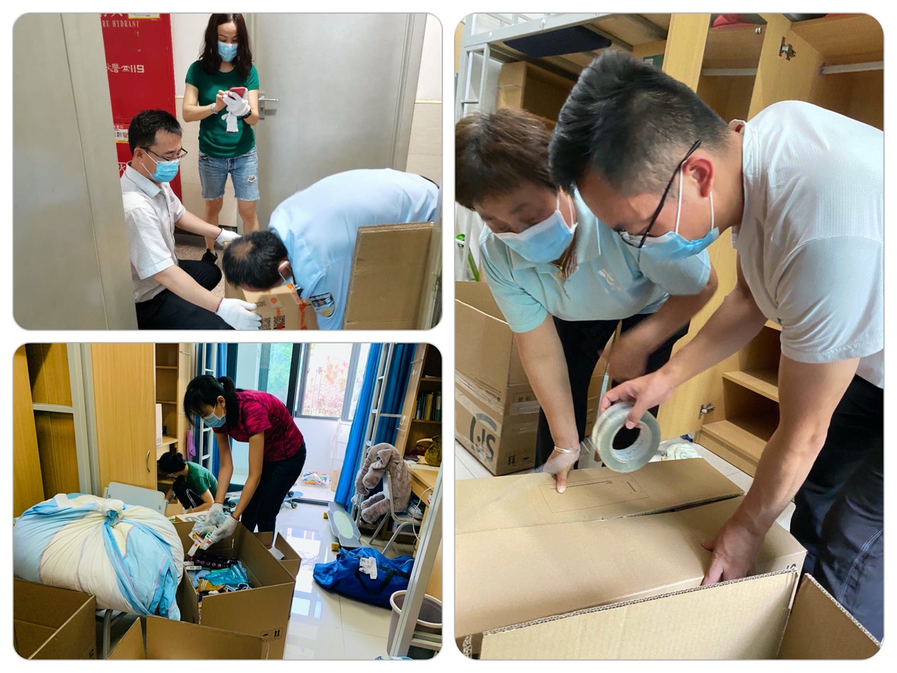 为了确保打包工作顺利进行,学工队伍加班加点落实行李打包前的准备工作。
