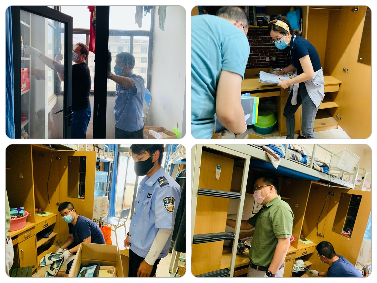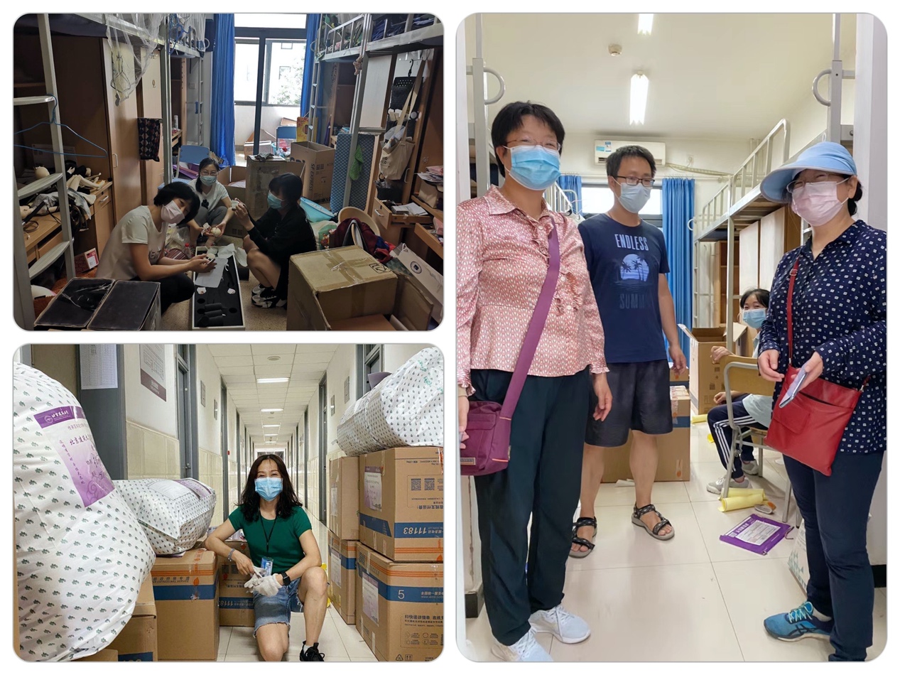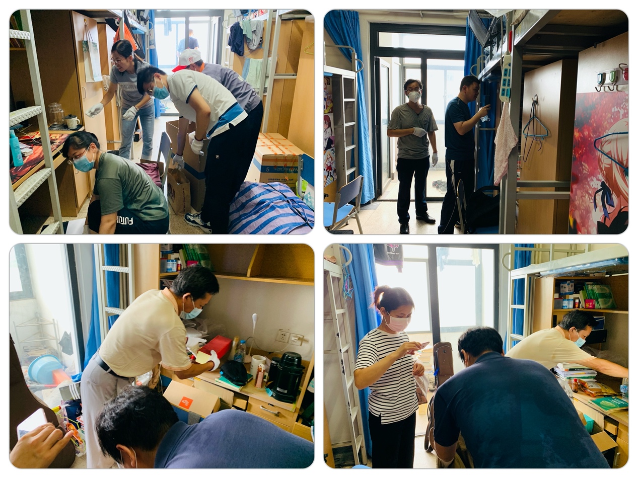 为了确保打包工作顺利进行,学工队伍加班加点落实行李打包前的准备工作。