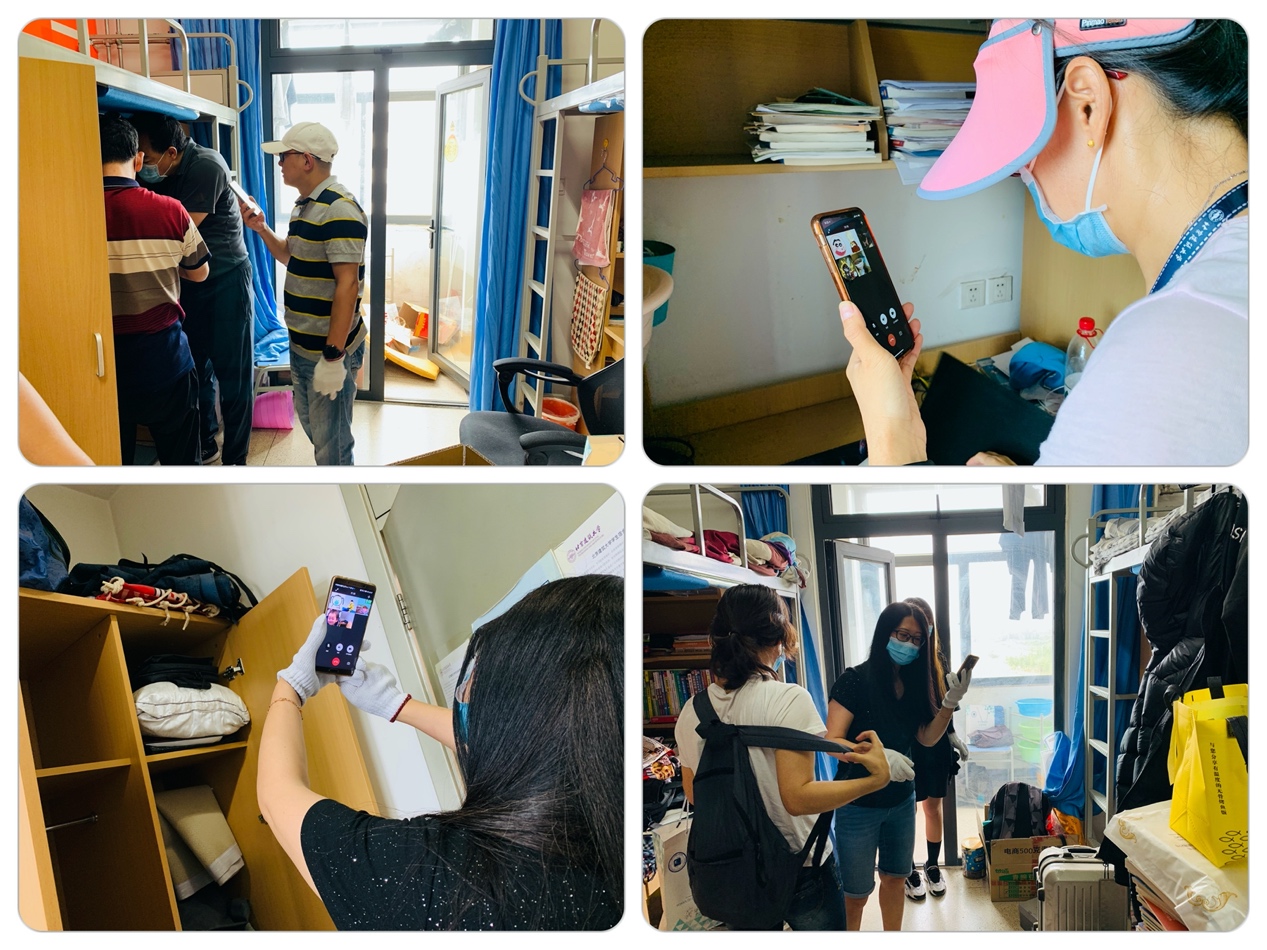 与学生核对确认好,打包好的行李分为暂存和邮寄两部分,每一份行李都被贴上北建大专属的行李标记。看我们可敬又可爱的老师们,整理好每一间宿舍后,成就感满满。