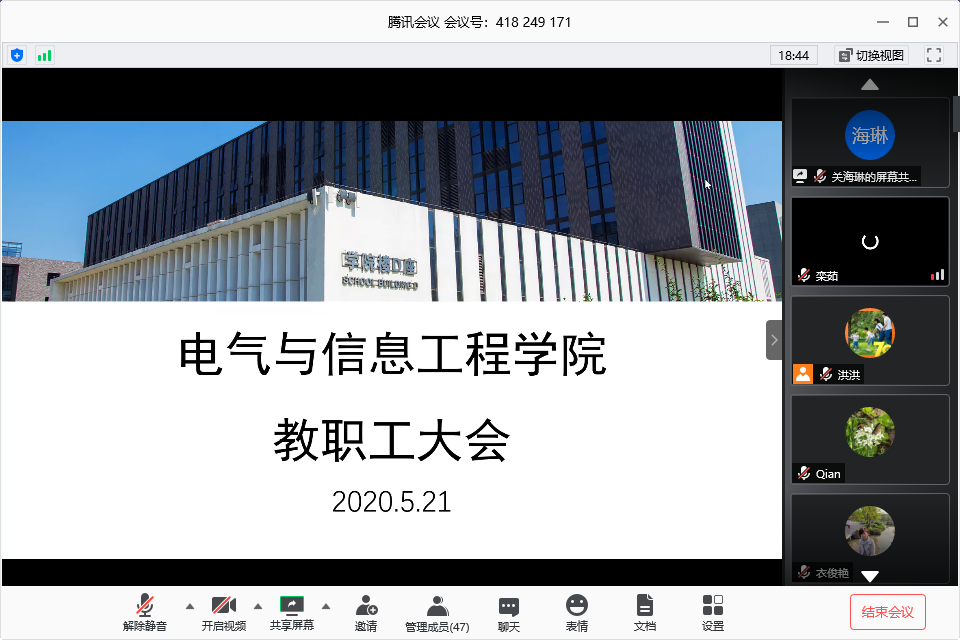 5月21日晚,电信扑克王下载 通过“腾讯会议”线上召开全体教职工大会,部署近期扑克王下载 各项重点工作。会议由扑克王下载 党委书记张雷主持,全体教职工参加。