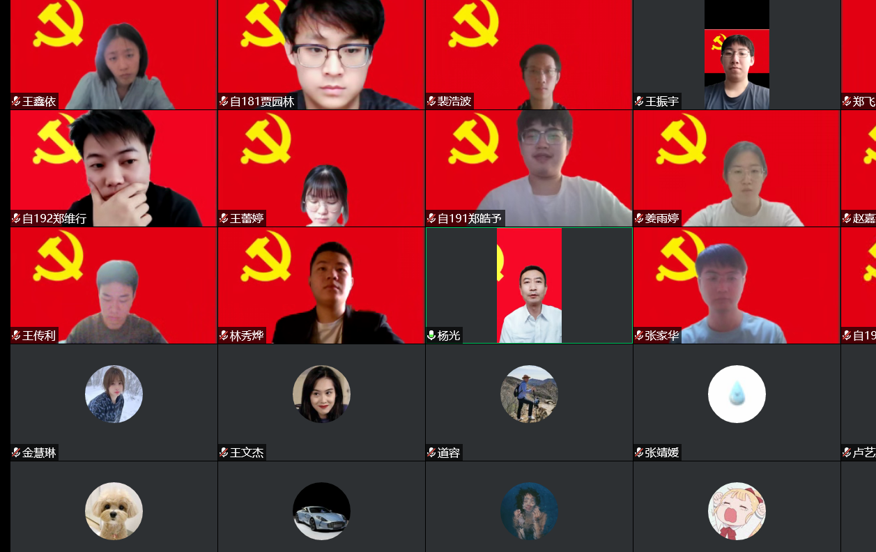 6月14日下午,自动化系本科生党支部进行了线上学习交流活动,集中学习习近平总书记在中国共青团成立一百周年大会上的讲话。活动特邀联系本支部的机关领导干部、财务处处长杨光参加,党支部全体党员参会。