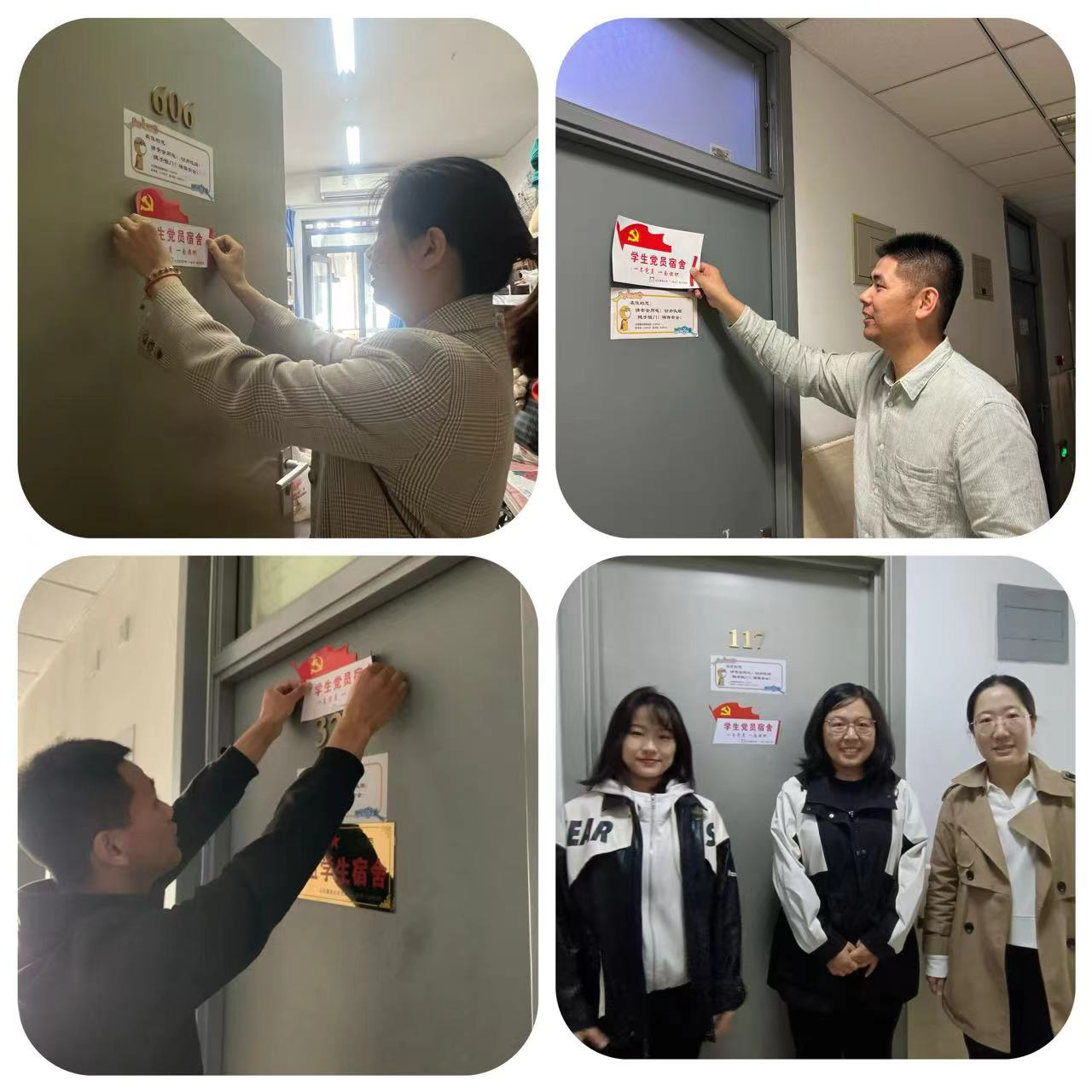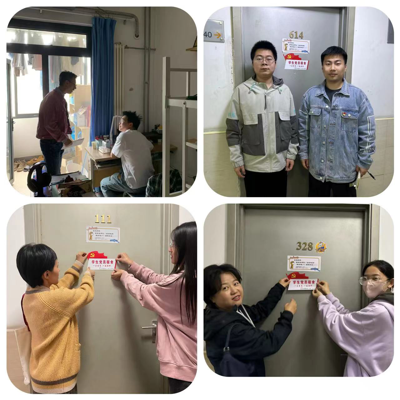 随后,与会领导为学生党员代表颁发党员宿舍标牌,各党支部书记、辅导员深入宿舍,为党员宿舍挂牌,并进行“五一”假期前宿舍安全检查和学生安全出行教育。